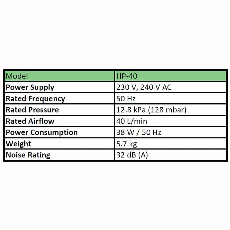 Hiblow HP-40 Specifications