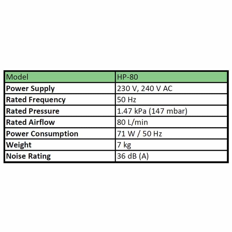 This HP-80 will deliver 80 litres of air per minute. (80 L/min)