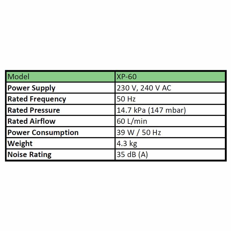 This XP-60 will deliver 60 litres of air per minute. (60 L/min)