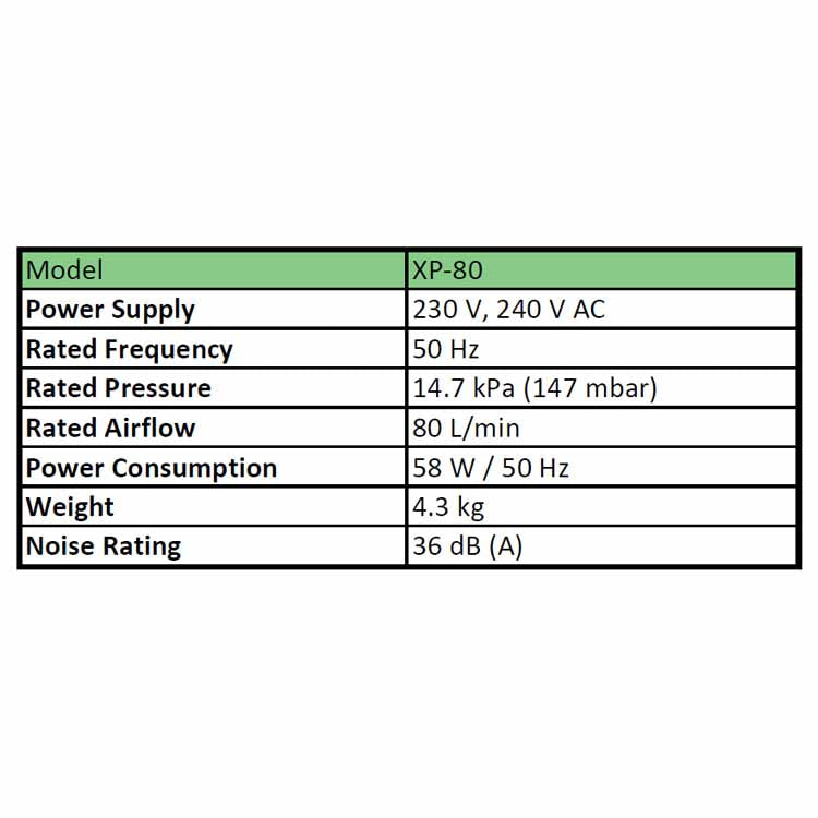 This XP-80 will deliver 80 litres of air per minute. (80 L/min)